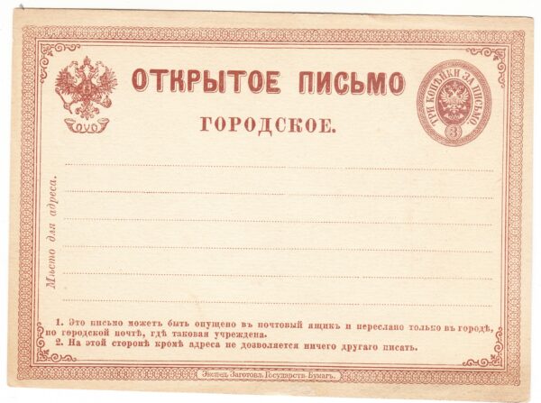 Открытое письмо городское № 1. Цена по каталогу Крамаренко 2022 года $50.