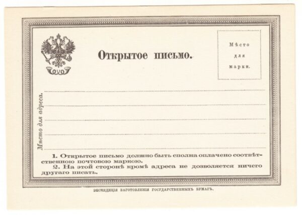Бланк формуляра открытого письма. Общероссийский выпуск № 1. Цена по каталогу А.С. Илюшина и О.В. Форафонтова 2007 года $40.
