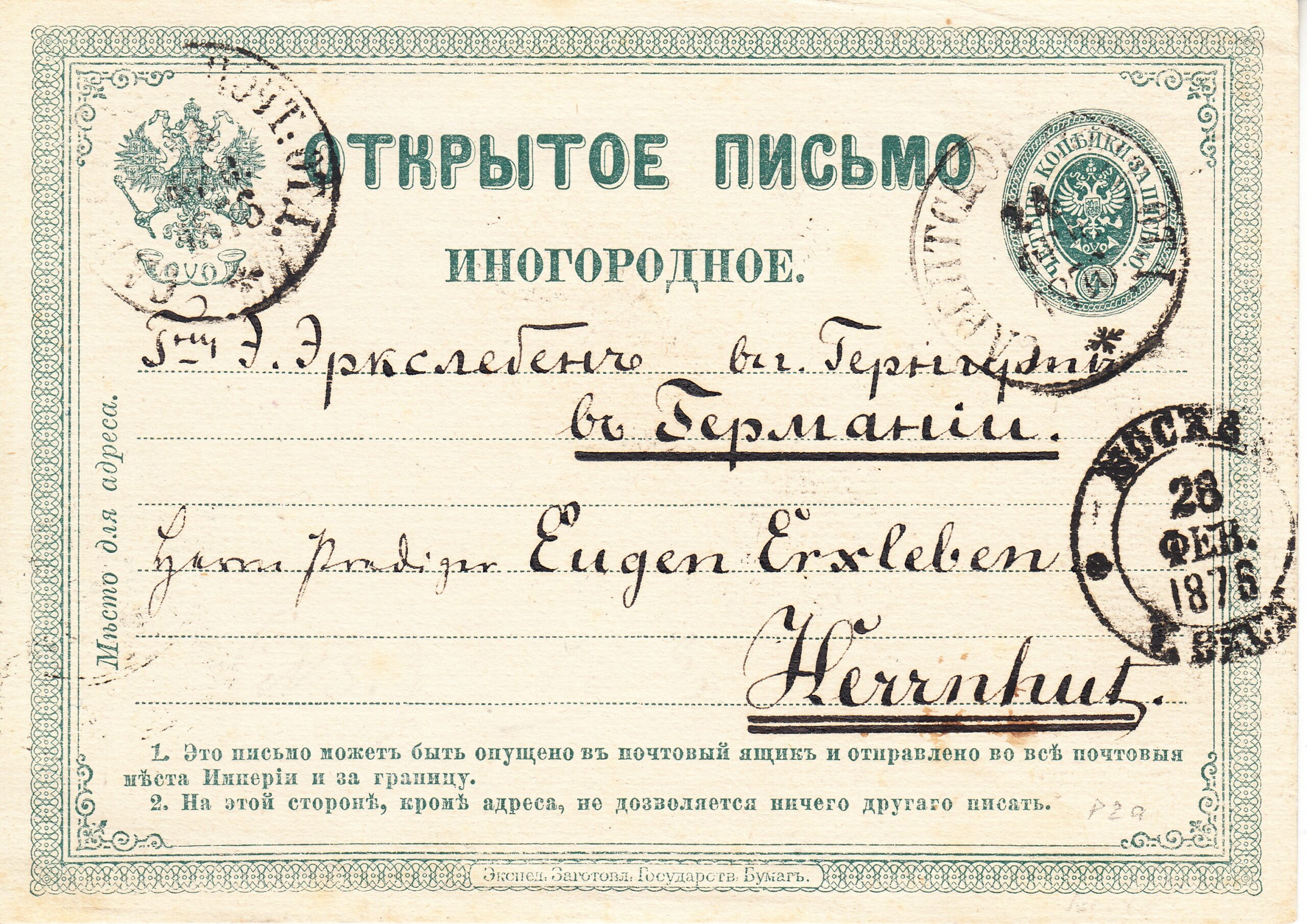 1876 Открытое письмо