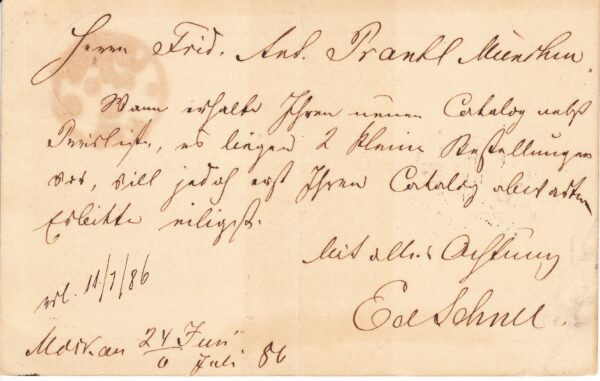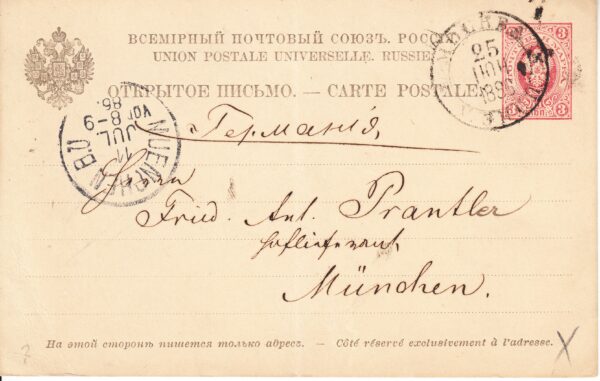 Маркированное открытое письмо № 6 отправлено из Москвы в Мюнхен от 25.06.1886 г. Цена по каталогу Крамаренко 2022 года $25.
