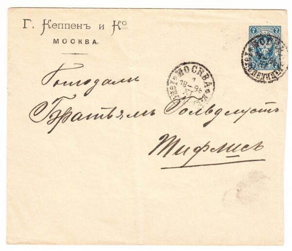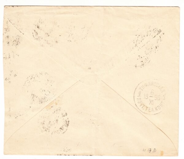 Маркированный конверт, прошедший почту. Шестнадцатый выпуск №43А (144х120). Письмо отправлено из Москвы в Тифлис от 01.11.1996 г. Цена по каталогу Крамаренко 2022 года $25.