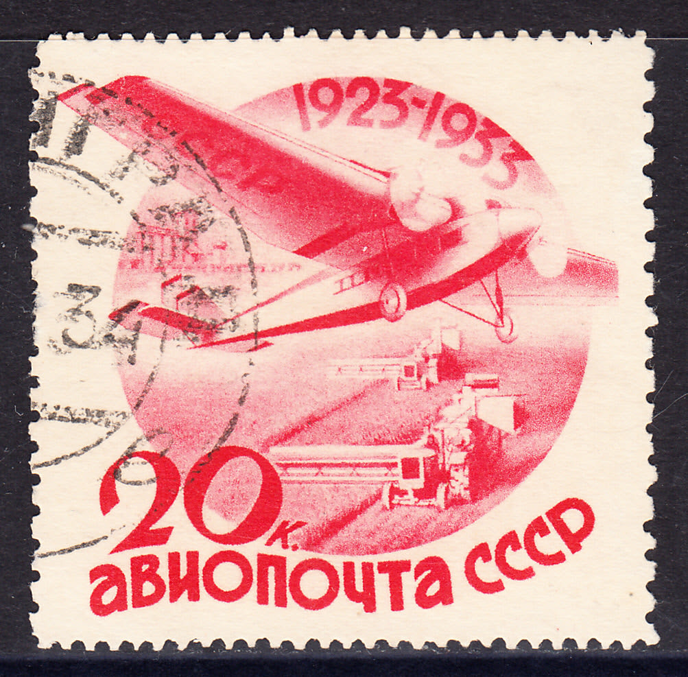 1934 10-летие Гражданской авиации и авиапочты (20 коп, Перф — 13 3/4 : 10, Гашеная — не каталогизирована)