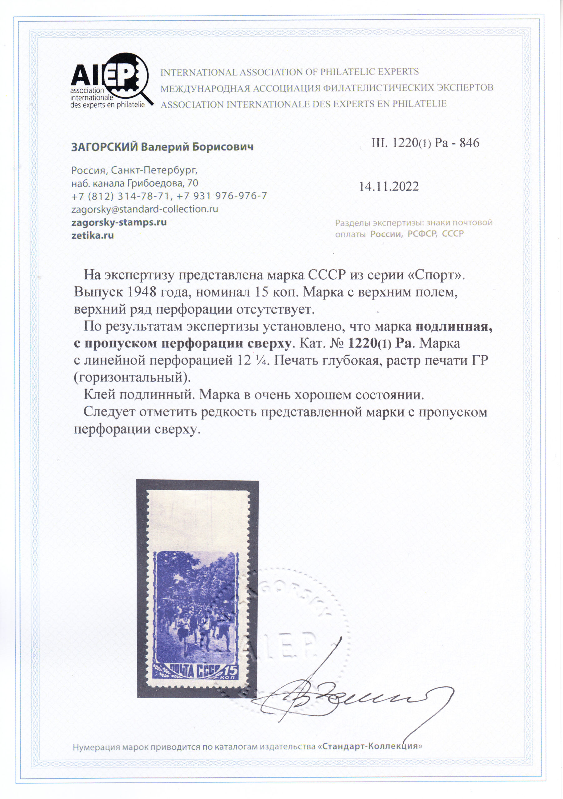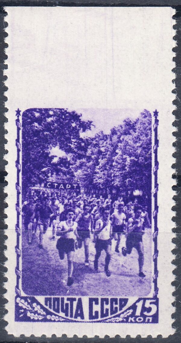 1948 Спорт Пропуск перфорации сверху (15 коп)