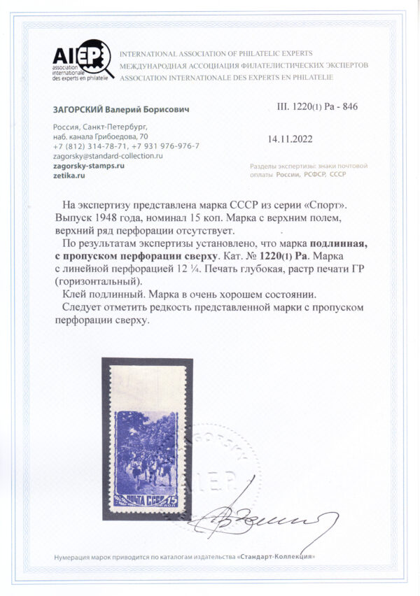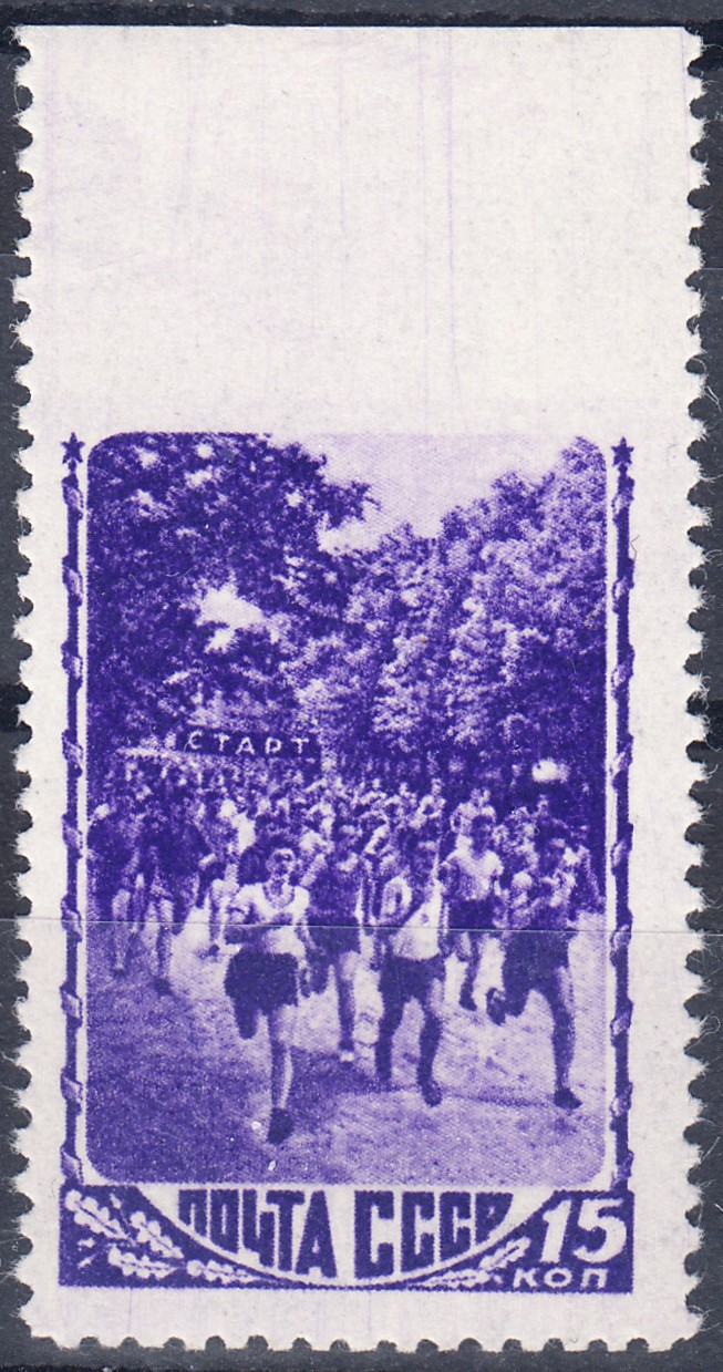 Главная / Магазин / СССР (1923-1991) / Коммеморативные марки / 1948 Спорт Пропуск перфорации сверху (15 коп)