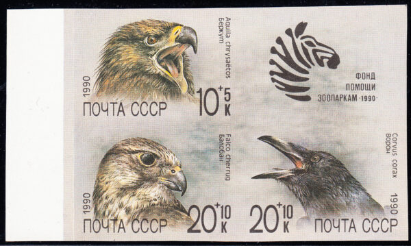 Главная / Магазин / СССР (1923-1991) / Коммеморативные марки / 1990 Птицы Беззубцовый квартблок с купоном